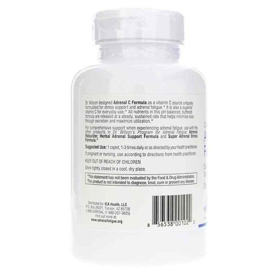 Dr. Wilson designed Adrenal C Formula is a vitamin C source uniquely formulated to support adrenal function during stress and/or adrenal fatigue, and a superior vitamin C for everyday use. All nutrients in this pH balanced, buffered formula are released at a steady, sustained rate that helps minimize loss through excretion and maximize utilization.