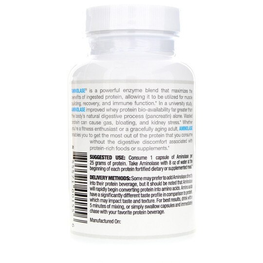 Consume 1 capsule per 25 grams of protein. Aminolase capsules may also be opened and added directly to your favorite protein supplement, or taken with any protein rich meal.