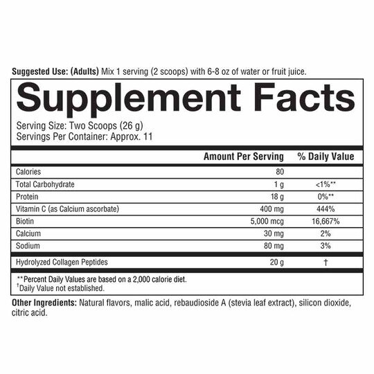 Youtheory® Collagen Powder is designed to help counteract age-related collagen loss. Supplying 20 mg of hydrolyzed collagen per serving, this convenient and easy-to-use product helps replenish essential beauty proteins, while delivering powerful health benefits. This formula is enhanced with vitamin C to aid internal collagen production and Biotin to support health and beauty factors.