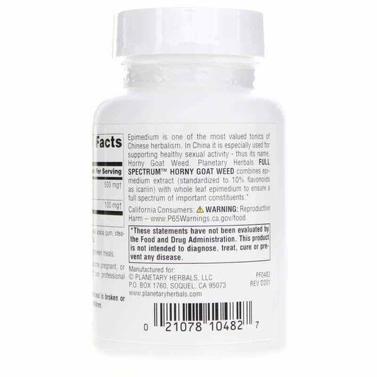 Epimedium is one of the most valued tonics of Chinese herbalism. In China it is especially used for supporting healthy sexual activity - thus its name, Horny Goat Weed. Planetary Herbals Full Spectrum™ Horny Goat Weed combines epimedium extract (standardized to 10% flavonoids as icariin) with whole leaf epimedium to ensure a full spectrum of important constituents.