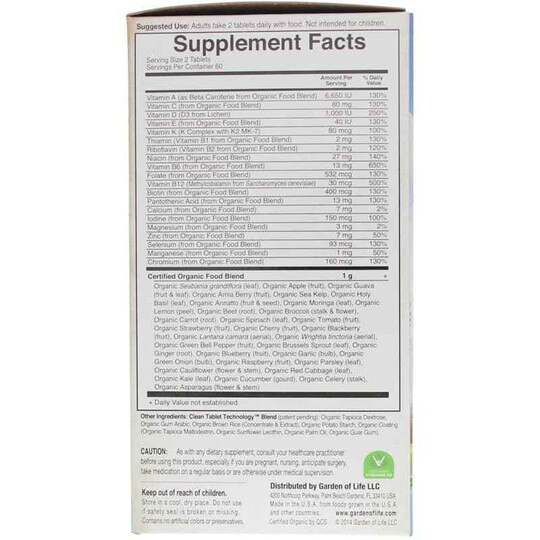 Other Ingredients: Clean Tablet Technology Blend (patent panting), Organic Tapioca Dextrose, Organic Gum Arabic, Organic Brown Rice (Concentrate & Extract), Organic Potato Starch, Organic Coating (Organic Tapioca Maltoclextrin, Organic Sunflower Lecithin, Organic Palm Oil, Organic Guar Gum).