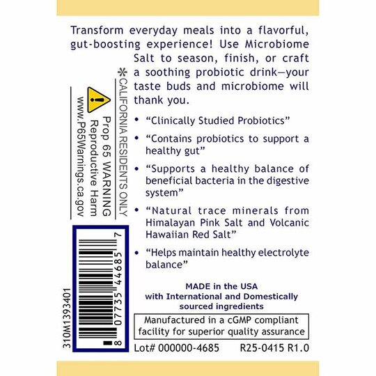 Transform everyday meals into a flavorful gut-boosting experience! Use Microbiome Salt to season, finish, or craft, a soothing probiotic drink-- your taste buds and microbiome will thank you.