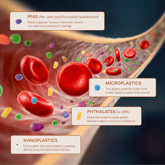 and air, these particles can enter the bloodstream and build up in tissues. Microplastic Daily Detox supports liver health and natural detox pathways to help your body flush out circulating microplastics and reduce toxic burden.*
