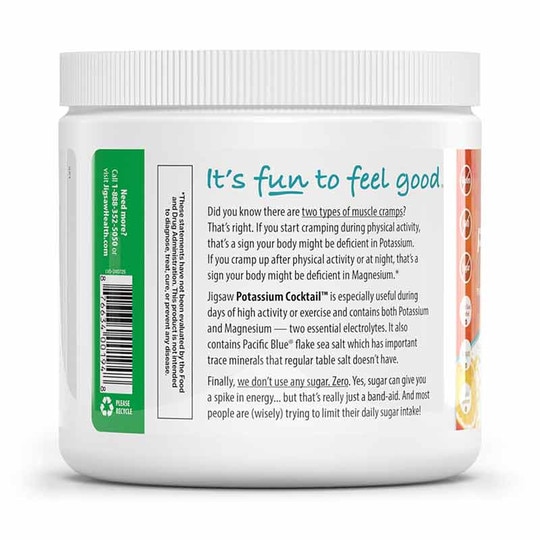 Jigsaw Potassium Cocktail™ (previously Pickleball Cocktail®) -- a sugar-free, delicious electrolyte powder with as much Potassium as two bananas. Keep your muscles happy all day long.*