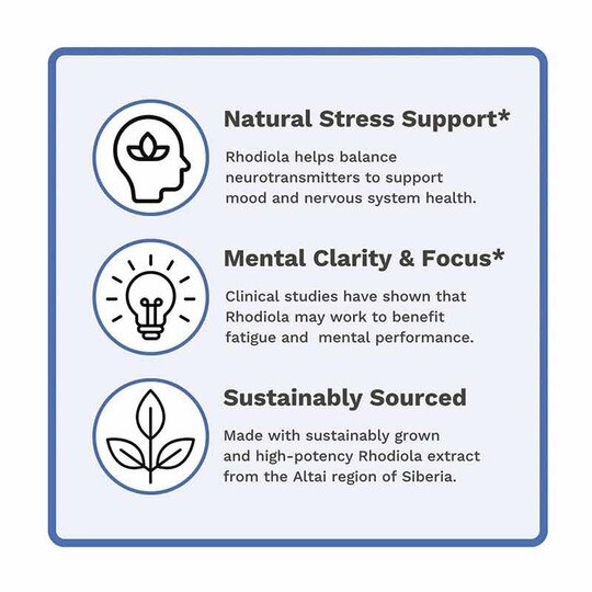 • Sustainably sourced rhodiola for environmental and product integrity