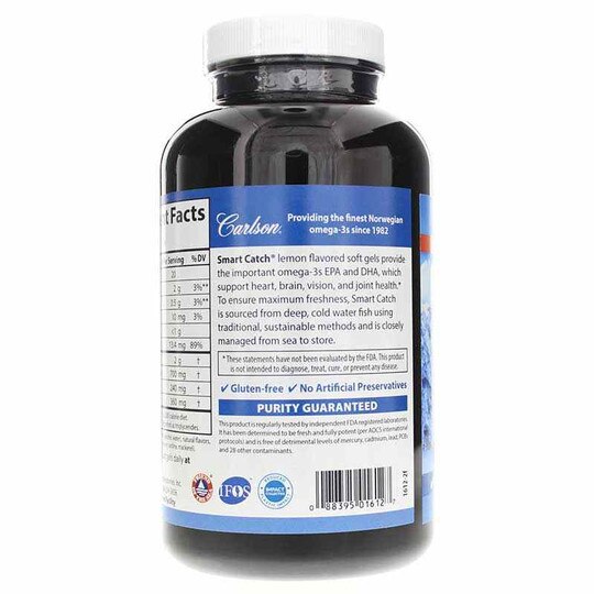 Carlson Teens Smart Catch supports healthy brain and vision function and promotes cognitive development. Each serving provides 700mg of omega-3s and is a great option for teens who don't eat a lot of fish. To ensure maximum freshness, Smart Catch for Teens is closely managed from sea to store. We source the highest quality, deep, cold-water fish using traditional sustainable methods. And like all Carlson omega-3s, freshness, potency, and purity are guaranteed.